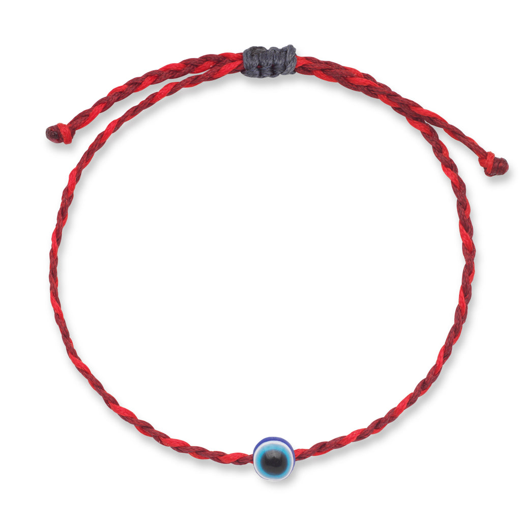 A single evil eye pendant attached to a braided bracelet with a sliding closure.