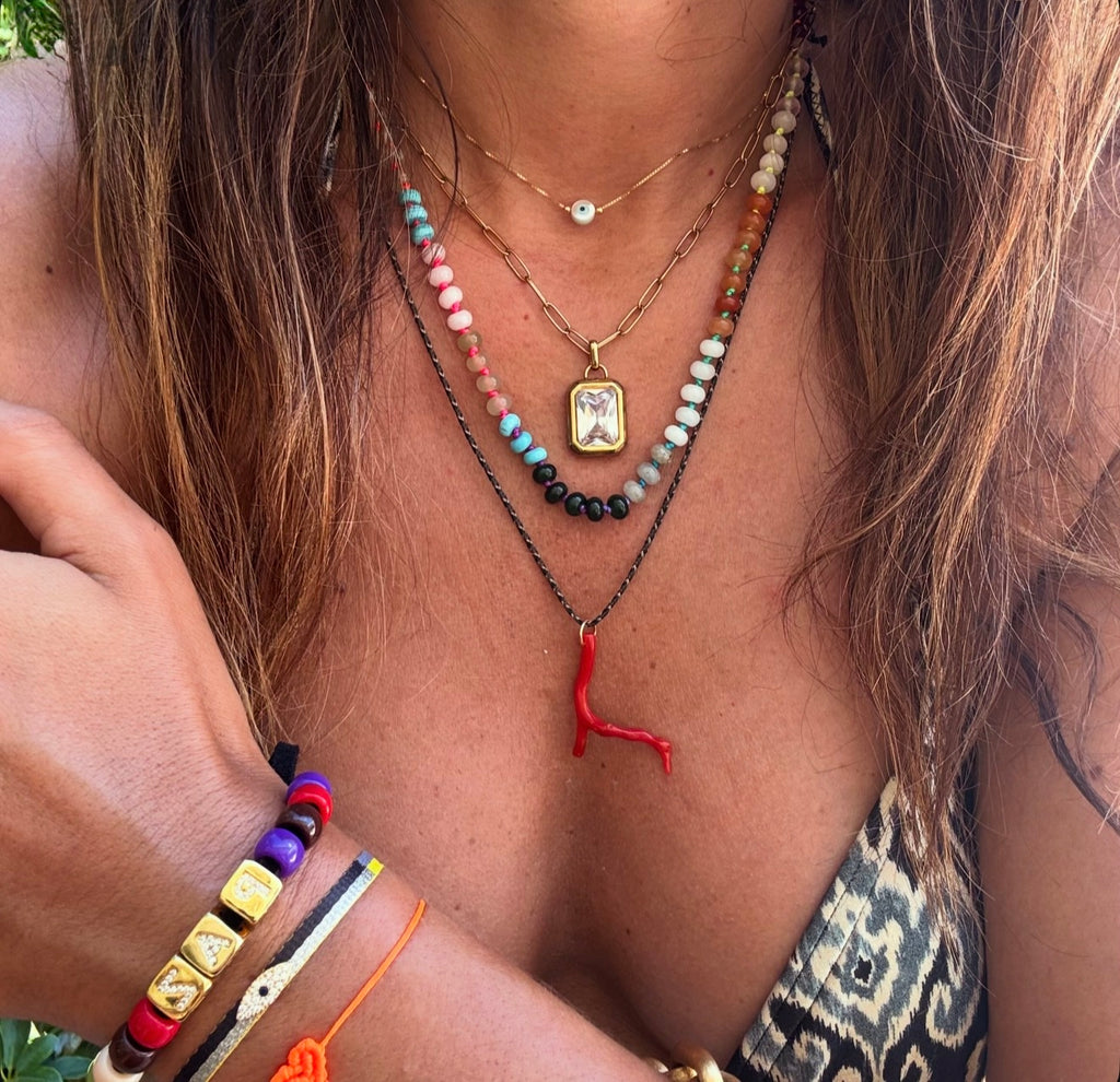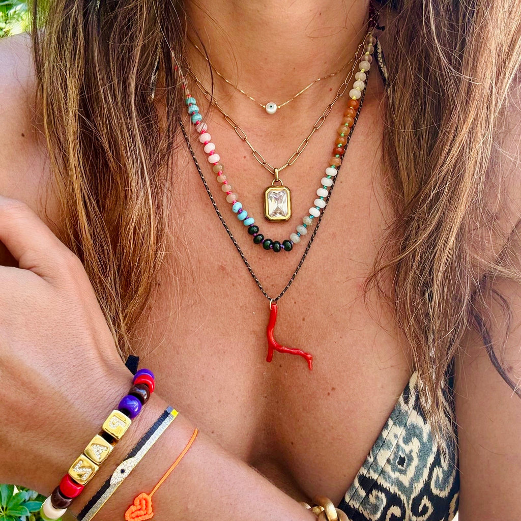 Medium gold-plated links with a rectangular-shaped bezel pendant.